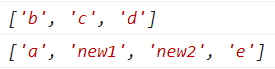 array 배열의 출력값을 보면 "b", "c", "d" 가 삭제되고, 삭제된 위치에 "new1", "new2"가 삽입되었다.