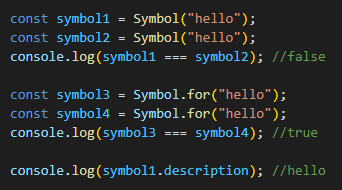 Symbol( )은 고유한 식별자로 사용하고 싶을 때 사용한다.