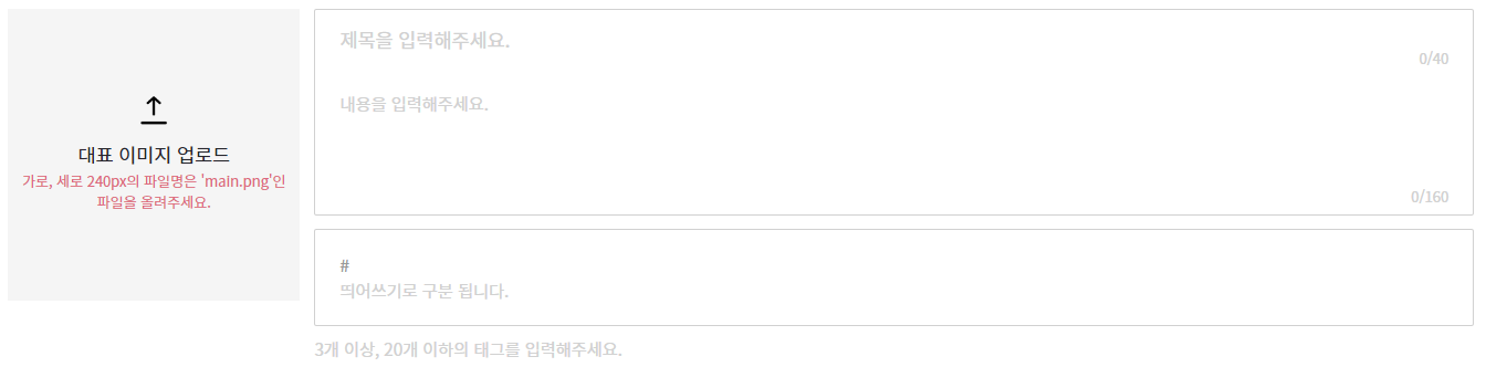 가로, 세로 240px의 규격을 맞추고, 파일명은 main.png 로 업로드 해야한다.